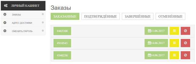 На рисунке 4.9 представлен форма заказы, которая находится в личном кабинете клиента.