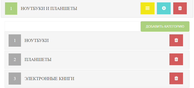 На рисунке 4.14 показана форма добавления в категорию подкатегории. При на нажатие на жёлтую кнопку в виде списка, открывается форма добавления или и редактирования подкатегорий в категории.