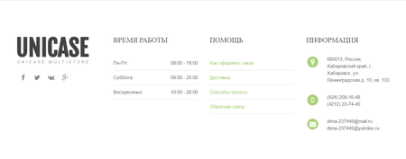 Подвал – состоит из двух разделов. Эта часть интерфейса не зависит от контента страницы и имеет статическое расположения в нижней части на странице.
