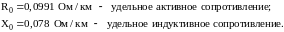 - удельные реактивное и активное сопротивления кабеля, Ом/км;