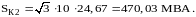 Определим мощность трехфазного КЗ на шинах второй ступени напряжения, МВА: