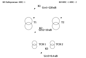Для расчетов предоставлены схема замещения сети электроснабжения подстанций (см. рисунок 1.1) и параметры силового трансформатора ПС НПС-1 (см. таблицу 1.1).