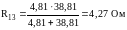 Параллельные сопротивления линий определяем по формуле, Ом: