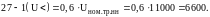 | Напряжение срабатывания органов пуска МТЗ по минимальному напряжению, В | 27-1(U<) = 6600 | |