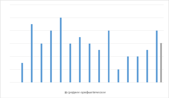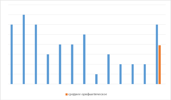 Но всего 6,25% (1) респондент показал низкий результат – 2 балла. Это говорит о том, что этот респондент имеет сверхчувствительную симпатическую нервную систему и остро реагирует на любую угрозу. Для нее характерны робость, застенчивость, неуверенность в своих силах, она может терзаться необоснованным чувством собственной неполноценности.