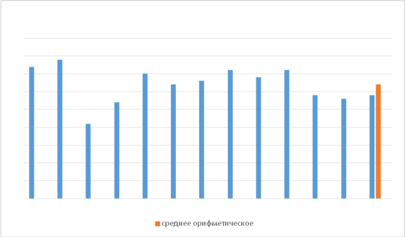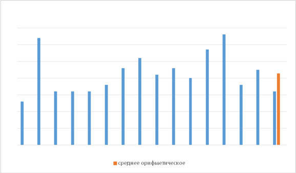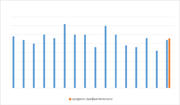 Среднее значение так же показывает удовлетворительный результат – 33,4 балла. Это свидетельствует о том, что данная группа профессионально пригодна к профессиональной деятельности.
