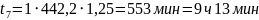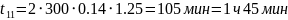 t1 - интервал времени на оформление закрытия перегона и прибытия машины к месту работ, t1=14мин;