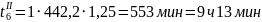 Мэлб – техническая норма времени электробалластера на отрыв 1 км рельсошпальной решетки, Мэлб=21,5 мин/км; Ко – коэффициент, учитывающий увеличение времени на пропуск поездов по соседнему пути и переходы рабочих во время работы, Ко = 1,25.