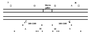 Рисунок 3.5 – Схема ограждения места работ переносными сигналами «С» на двухпутном участке.