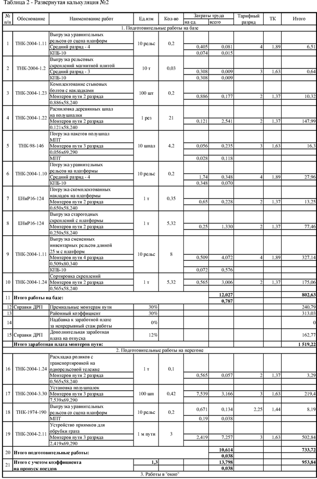 | 11 Отвинчивание гаек и снятие стыковых болтов в конечных и начальных стыках, оставляя накладки закрепленные на один болт | болт | 12 | 1,13 | - | 13,56 | 17 | мп - 2 | 9 |