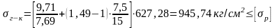 σ п-к – напряжение в кромке подошвы рельса, кг/см2;
