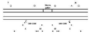 Рисунок 3.5 – Схема ограждения места работ переносными сигналами «С» на двухпутном участке.