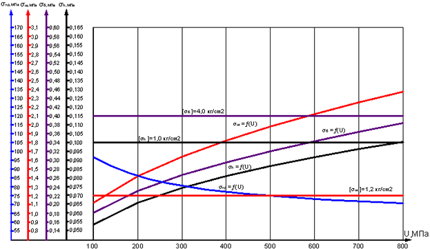 | U, МПа | Величина напряжений при скорости движения 80 км/ч, МПа | |||