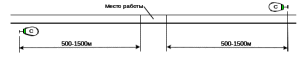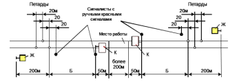 Рис.3.6.–Схема ограждения места работ переносными сигналами «С» на однопутном участке.