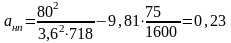 При торможении в кривой возникает дополнительная поперечная сила, которая определяется по формуле