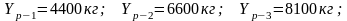 Величины боковых сил Yб при расчетном ускорении и тормозных силах NT=0; NT=70000 кг; NT=100000 кг