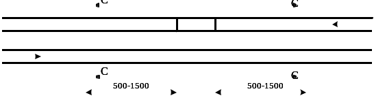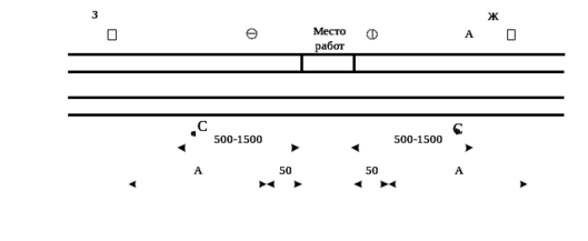 Рисунок 3.5 – Схема ограждения места работ переносными сигналами «С» на двухпутном участке.