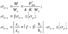 - максимальная эквивалентная нагрузка для расчетов напряжений в рельсах от изгиба и кручения, кг;zг и zn – расстояние от горизонтальной нейтральной оси до крайних волокон соответственно головки и подошвы с учетом износа, см;bг и bn – ширина соответственно головки и подошвы рельса, см;