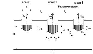 Нормальное напряжение в балластном слое и на основной площадке земляного полотна определяются на глубине h от подошвы шпалы в сечении пути под расчетным колесом. Расчетное колесо располагается по направлению оси шпалы.