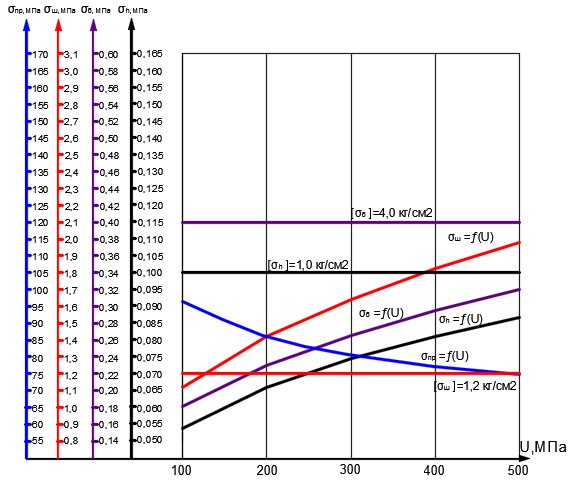 Полученные в результате расчета напряжения σш и σб сравнивают с допускаемыми [σш] и [σб]. В соответствии с [1] принимаем [σш]=14 кг/см2, [σб] = 3 кг/см2. Данные расчетов не превышают допустимые значения, следовательно, на данном участке уменьшение скорости не требуется.