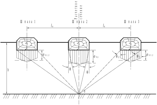 Рисунок 1.2 – Расчетная схема определения напряжений на основной площадке земляного полотна