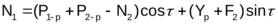 F1 - сила трения гребня колеса по рабочей грани головки рельса