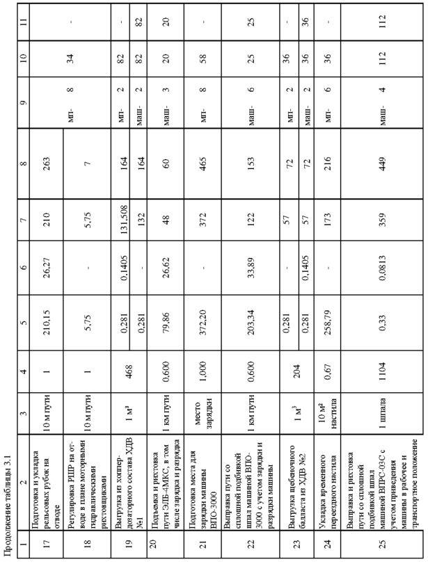 - техническая норма времени на выправку пути со сплошной подбивкой шпал, рихтовки пути и оправки балластной призмы машиной ВПО-3000, маш-мин/км (