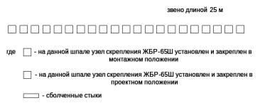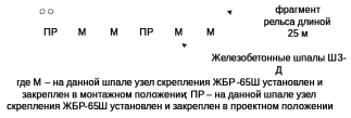 Рисунок 4.6. Установка узлов скреплений ЖБР-65Ш в монтажное положение на всех шпалах, кроме каждой 15-ой и 33-ей шпалах на звене