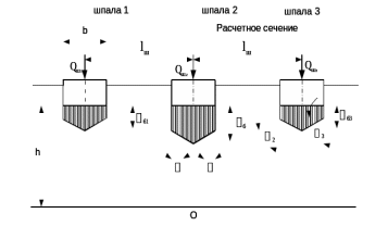 от подошвы шпалы в сечении под расчетным колесом. Расчетное колесо располагается па направлению оси шпалы.