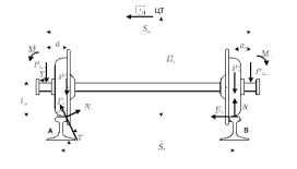 , действующие на шейки оси. Как известно, нагрузка от вагона приложена через буксы к шейкам оси колесной пары, а ее воздействие на рельсы может быть эквивалентно представлено вертикальными силами