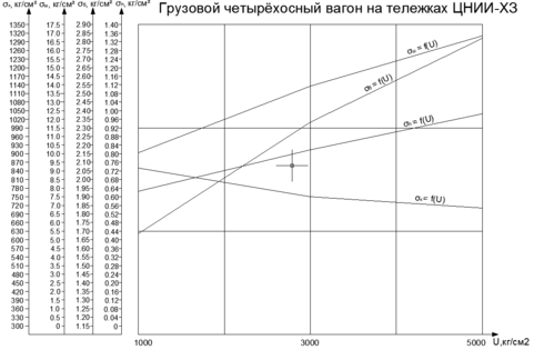 Рисунок 1.6. График зависимости напряжений от статической нагрузки на колесо.