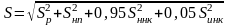 Среднее квадратическое отклонение динамической вертикальной нагрузки колеса на рельс S от вертикальных колебаний, кг, определяется по формуле композиции законов распределения его составляющих