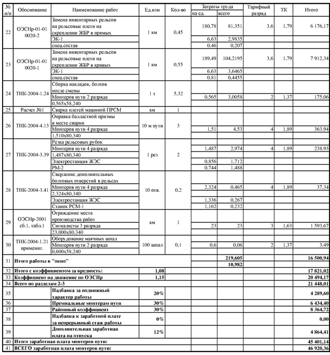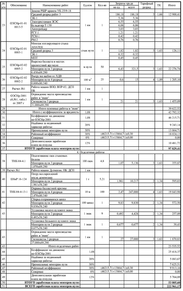 – разбив весь участок, на пять участков, определили длину фронта работ равную 2,6 км для проведения основных работ капитального ремонта пути в "окно" на закрытом перегоне продолжительностью 22 часа 01 минут;