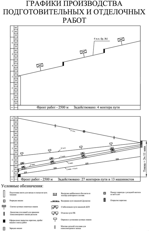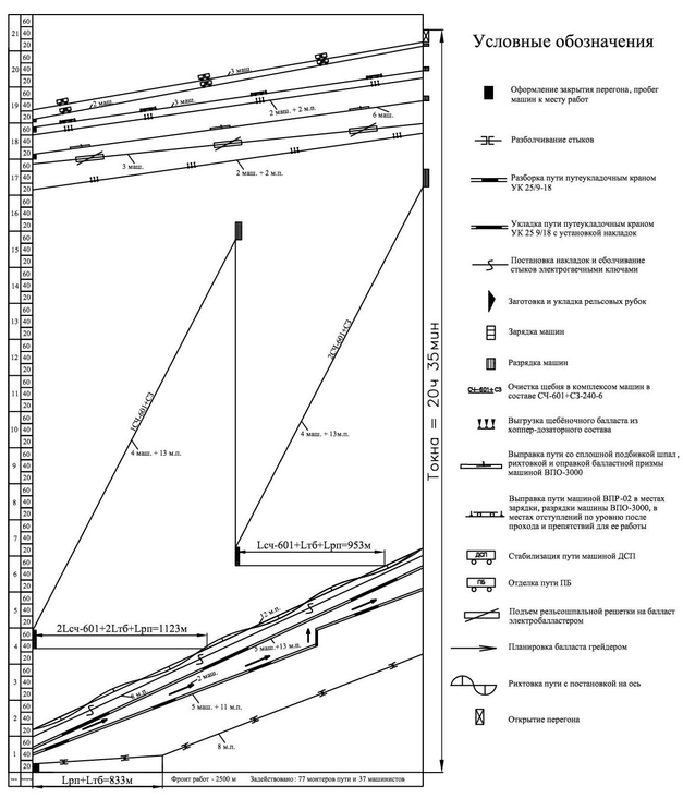 Рисунок Б.1 – График выполнения основных работ по замене рельсошпальной решетки и глубокой очистке балласта