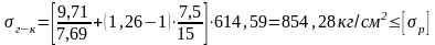 σ п-к – напряжение в кромке подошвы рельса, кг/см2;