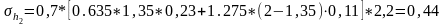 σh2 - напряжения от воздействия 2-й шпалы (расчетной) в сечении пути под колесом, кг/см2 .