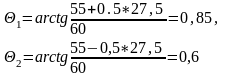 Углы Θ1 и Θ2 , радиан, определяются по формулам:
