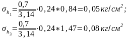 где σh1 и σh3 – напряжения от воздействия соответственно 1-й и 3-й шпал, лежащих по обе стороны от расчетной шпалы (рис. 1.3), кг/см2;