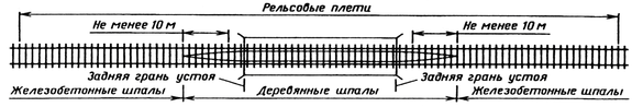 Рисунок 4.3. Схема расположения железобетонных и деревянных шпал при примыкании рельсовых плетей к мостам.