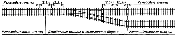 Рисунок 4.2. Схема примыкания бесстыкового пути на железобетонных шпалах к стрелочному переводу.
