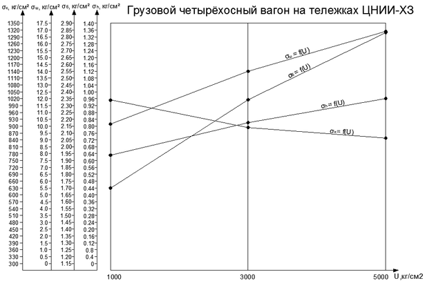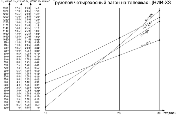 Рисунок 1.5. График зависимости напряжений от статической нагрузки на колесо.