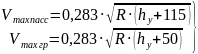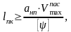 Расчет длины с учетом ограничения вертикальной скорости подъема колеса на возвышение, ([f]=30 – 50 мм/с).