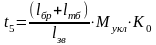 Интервал времени между началом работ путеукладочного поезда и началом работы бригады по постановке накладок и сболчивания стыков определяется по формуле