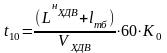 Время окончания подъемки пути на балласт ЭЛБ определяется по формуле