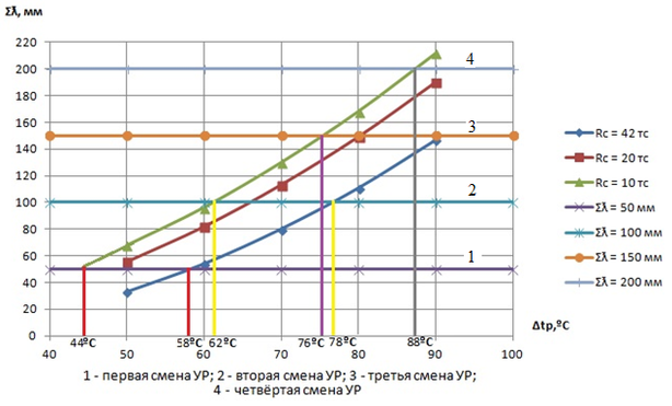 | Δtр,ºС | Rc,т/ΔtR, ºС | r, кгс/см /Δtr,ºС | ||||