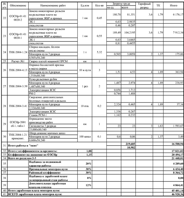 Ведомость затрат труда по техническим норма на укладку рельсовых плетей
