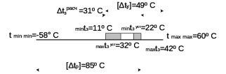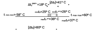 Рисунок 5.13 - Температурные интервалы закрепления рельсовых плетей на постоянный режим эксплуатации, R=∞ м.