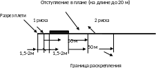 В случаях, если разность между температурой закрепления плети и температурой ее перед устранением отступления пути в плане равна 150С и более по обеим рельсовым нитям, за 3-4 м до начала неровности (по ходу движения поездов)на двухпутных участках и по ходу преимущественного движения грузовых поездов на однопутных участках необходимо выполнить разрезку каждой рельсовой нити и отрихтовать путь. Перед разрезкой плетей на каждой рельсовой нити на расстоянии 1,5-2,0 м от места планируемого реза (рисунок 5.1), необходимо нанести риски на рельсах и на шпале, а на расстоянии 50 м от них (по ходу движения поезда) нанести на рельсах и шпалах вторые риски. После разреза и раскрепления 50-метрового участка плети необходимо определить абсолютную величину его удлинения или укорочения.