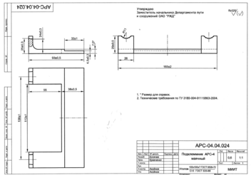Верх концов «маячных» шпал с наружных сторон рельсовой колеи за пределами скреплений окрашивается яркой краской. «Маячная» шпала всегда должна быть хорошо подбита. При скреплениях КБ65 закладные болты на ней должны быть затянуты и установлены клеммы с укороченными ножками. При скреплениях АРС-4 типовой подклеммник должен быть заменен на подклеммник для «маячных» шпал, рисунок 4.5, а монорегулятор установлен на 3-ю позицию. При отсутствии клемм с укороченными ножками (КБ65), подклеммников для «маячных» шпал (АРС-4), клеммы на «маячных» шпалах со скреплениями КБ65, а также клеммы и монорегуляторы скреплений АРС-4 на «маячных» шпалах не устанавливаются.