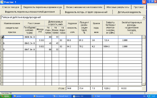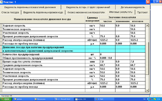 Рис.2.10 Итоговые результаты тяговых расчетов до реконструкции пути